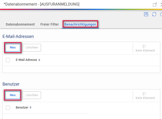 Schaltfläche Neu. Falls Sie ein bereits angelegtes Datenabonnement bearbeiten möchten, klicken