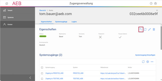- Nur Tenant Admins haben Zugriff auf die Zugangsverwaltung von AEB-Konten.