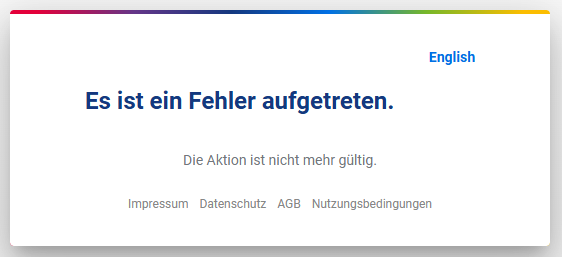 Falls Sie Ihr AEB-Konto für Ihre nXt-Lösung nicht rechtzeitig aktiviert haben, erhalten Sie beim Öffnen des Bestätigungslinks eine Fehlermeldung.