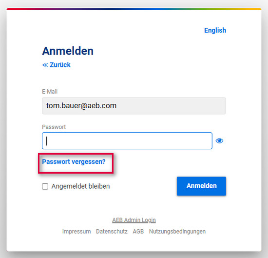 - Geben Sie die E-Mail-Adresse Ihres AEB-Kontos ein.