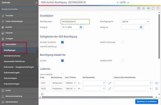 - Lesen Sie mehr zur Anlage von Ladeorten und den zugehörigen Ausfuhrzollstellen.