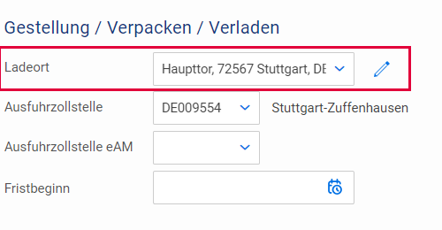 - Geben Sie im Feld Ladeort die Adresse des Ladeortes mit Länderkennzeichen ein.