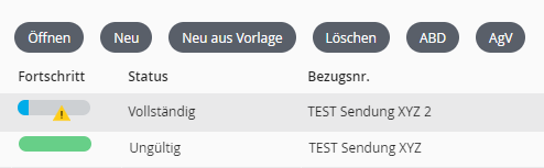 Die duplizierte Anmeldung steht Ihnen nun für eine Korrektur zur Verfügung. Die vorherige Ausfuhranmeldung ist als ungültig gekennzeichnet und bleibt in der Übersicht sichtbar.