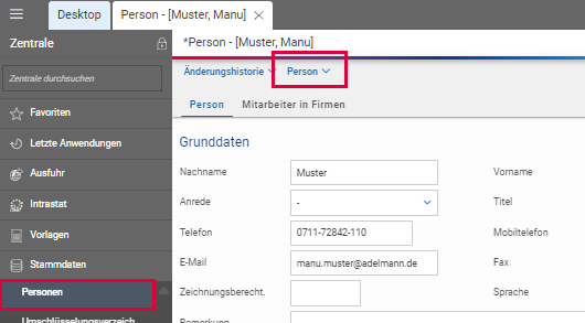 - Öffnen Sie die neu angelegte Person.
