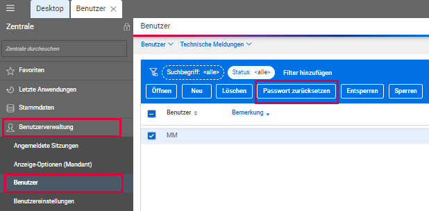 Passwörter von Benutzern zurücksetzen