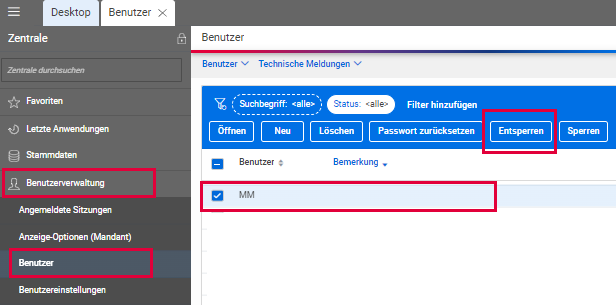 Die Sperrung können Sie über die Benutzerverwaltung in der Übersicht der Benutzer aufheben.