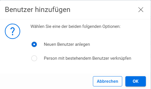- Klicken Sie im neuen Fenster die Angabe Neuen Benutzer anlegen aus und bestätigen Sie mit OK.