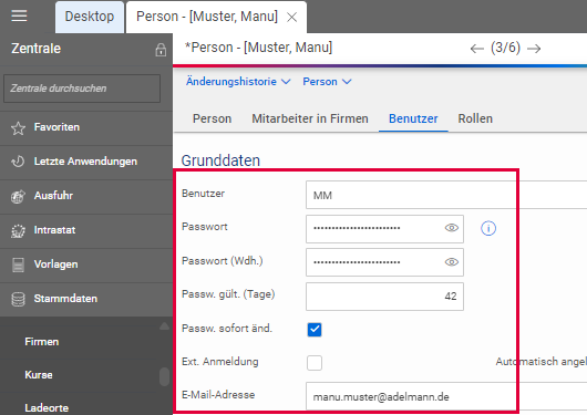- Der neue Benutzer ist nun für Ihren Mandanten angelegt.