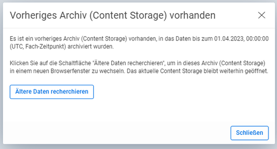 Ab dem 1. April 2023 wählen Sie in den Archiv-Rechercheanwendungen grundsätzlich, ob Sie Daten vor oder nach dem 01.04.2023 einsehen möchten. Auf diese Wahlmöglichkeit weist Sie die Anwendung aktiv mithilfe eines Meldungsfensters hin.
