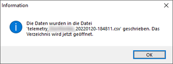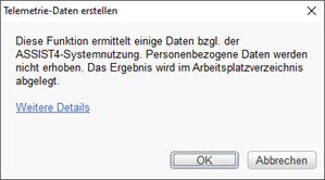 Unter Weitere Details können Sie sich eine Auflistung der ASSIST4-Telemetriedaten anzeigen lassen. - Klicken Sie OK, um zum Ausgabeverzeichnis zu gelangen.