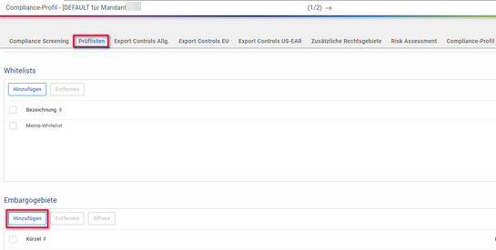 Hinterlegen Sie das neu angelegte Gebiet in der Mappe Prüflisten in der Feldgruppe der Embargogebiete.