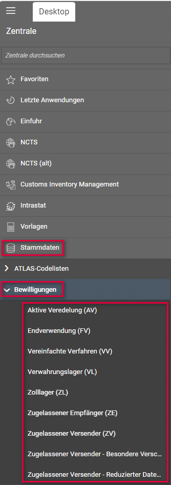 | Zugelassener Versender (ZV/ACR) für NCTS-Überführungen | X | Bewilligungen: Zugelassener Versender (ZV) | |