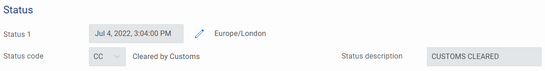 The record will have various statuses throughout the process, with the final processed status being customs cleared (CC).