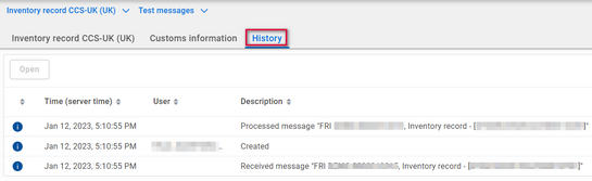 As with an import declaration, any customs messages that are received/sent/processed that relate to the inventory record will appear in the Customs information tab.