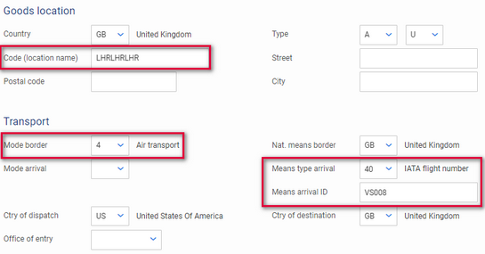 Means type arrival / Means arrival ID - Arrival = 40 or 41 and the corresponding ID needs to be entered.
