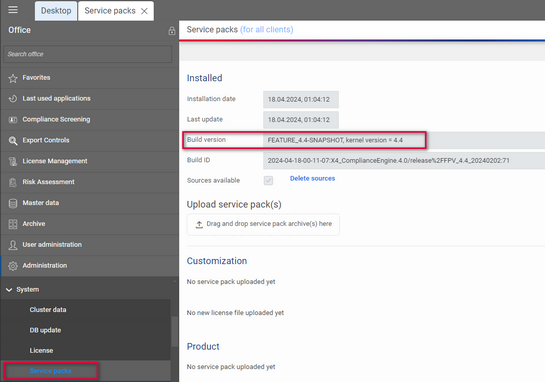 If the automatic download of service packs is not enabled in Trade Compliance Management, download the current service pack in the Documentation & Downloads area. Among other things, current service packs and documentation are available there.