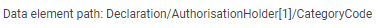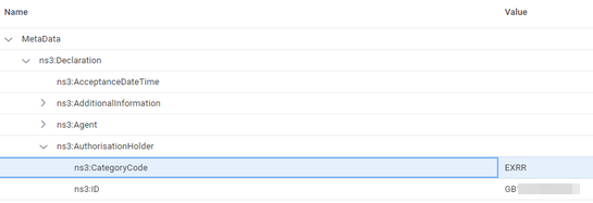 - Expand the links in sequence (i.e. Declaration > AuthorisationHolder > CategoryCode).