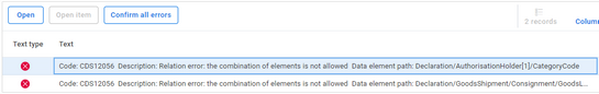 - Other data in the declaration is causing Customs to generate an error for this data.
