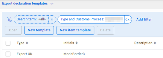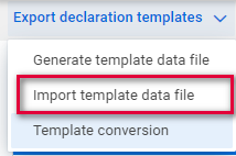 - From the specific declaration type templates menu (in this example: Export declaration templates menu) choose Import template data file.