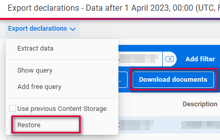- Only users with the role of I_CLIENTADMIN can restore declarations from the archive.