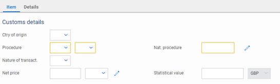 - Procedure types are added by selecting the combination that relates to your movement type. Please refer to HMRC CDS guidance. Select from the two drop-down lists against Procedure.