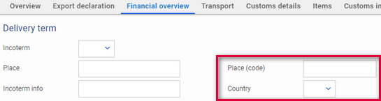 For AES exports, the Delivery term information includes two new fields.