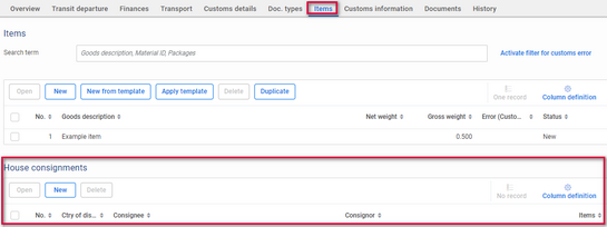 How do I Link an Item to a House Consignment on a Transit Declaration?