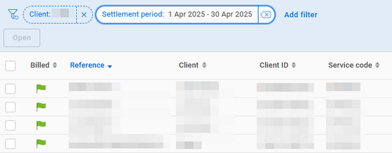 - The data criteria will be transferred to the Settlement period search box. Click Apply and search to see the results in the overview.