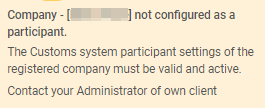 If the assistant is showing a message that the declarant company is not configured as a participant when trying to submit a declaration, the messaging route may be incorrect for the selected declarant.