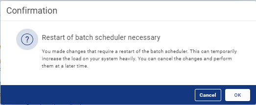 - Confirm the prompt informing you of the necessity to restart the batch scheduler with OK.