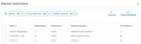 After you have assigned an ID to the manual restriction, maintain information on the Countries/Partners sheet: